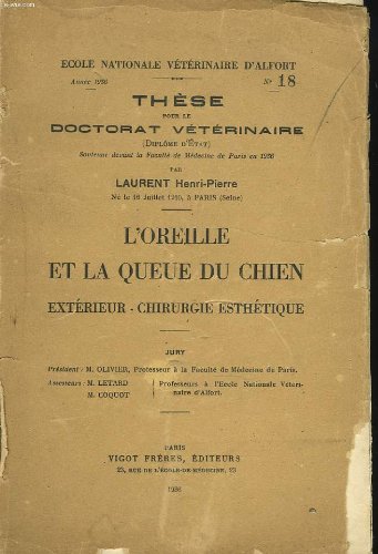L'OREILLE ET LA QUEUE DU CHIEN. EXTERIEUR, CHIRUURGIE ESTHETIQUE. THESE POUR LE DOCTORAT VETERINAIRE. Download or read online books in PDF, EPUB, Tuebl, and Mobi Format. Click Download or Read Online button to get L'OREILLE ET LA QUEUE DU CHIEN. EXTERIEUR, CHIRUURGIE ESTHETIQUE. THESE POUR LE DOCTORAT VETERINAIRE. book now.
